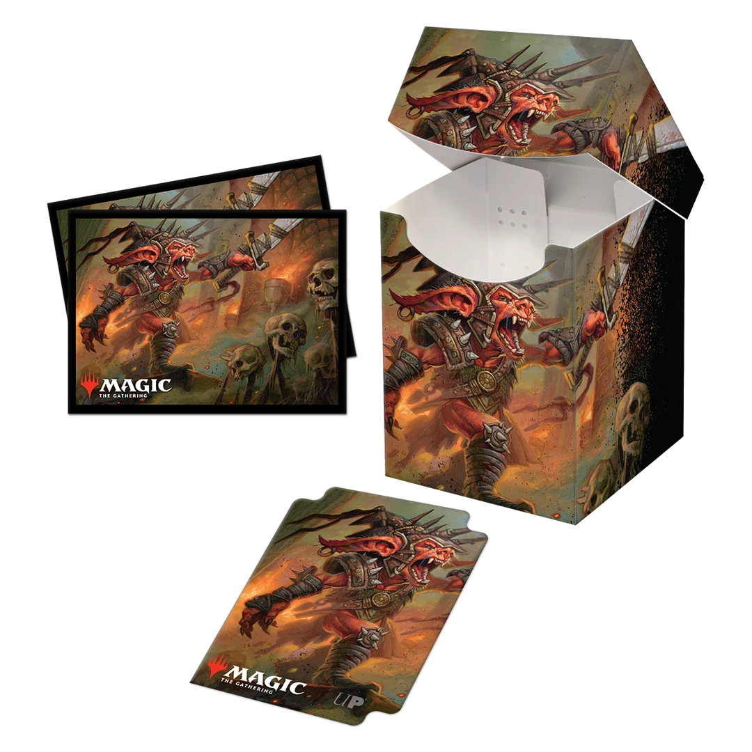 Become a legend at your next Commander game night with matching Deck Protector sleeves and Deck box featuring vibrant, full-color legendary Rograkh, Son of Rohgahh art from Magic: the Gathering set, Commander Legends! Deck Protector sleeves are made with archival-safe, polypropylene materials, using ChromaFusion technology to provide lasting protection for your cards and keeps art intact and peel-free. 100 Deck Protector sleeves come with a deck divider and are packaged within a PRO 100+ Deck Box with matching art, for the ultimate commander gameplay experience!