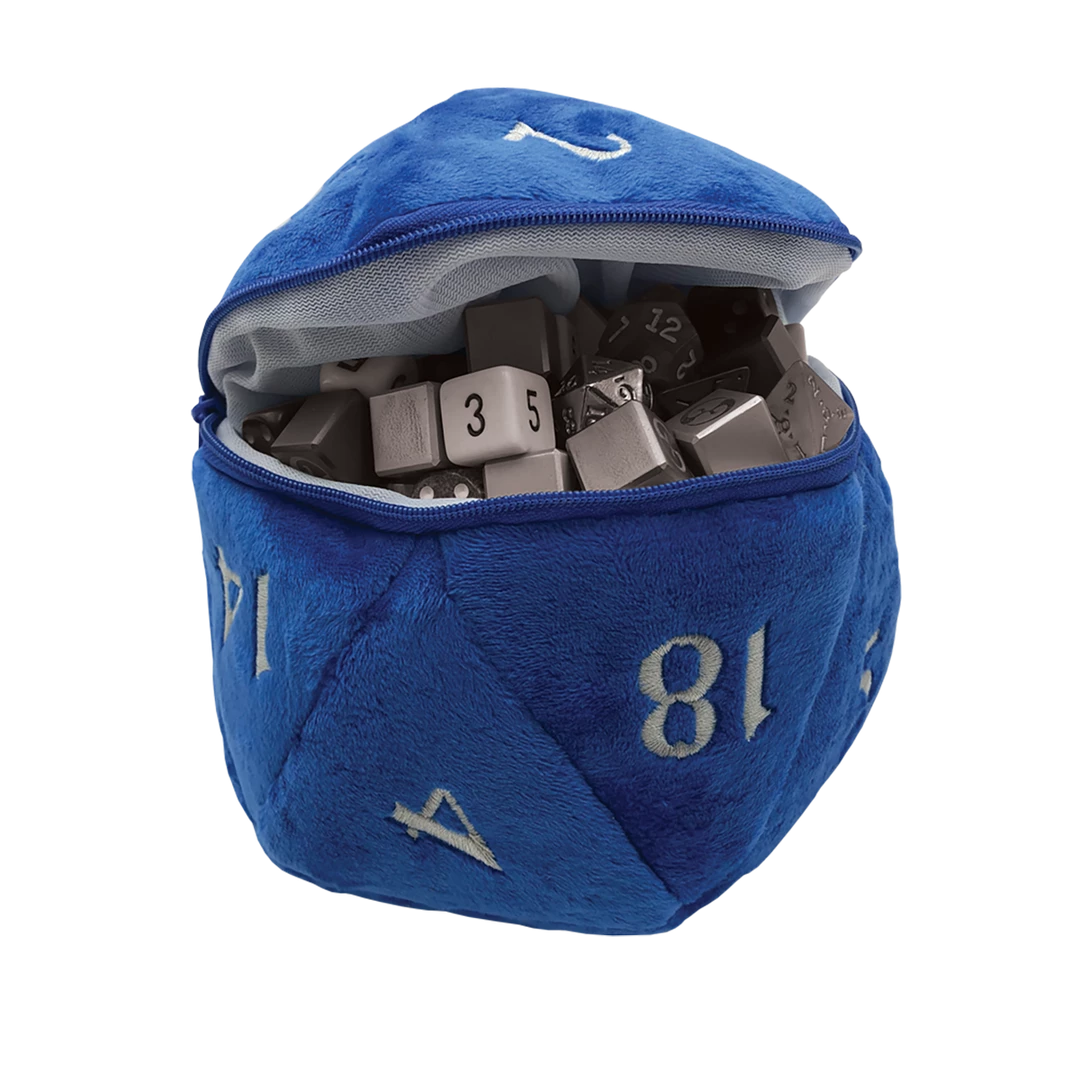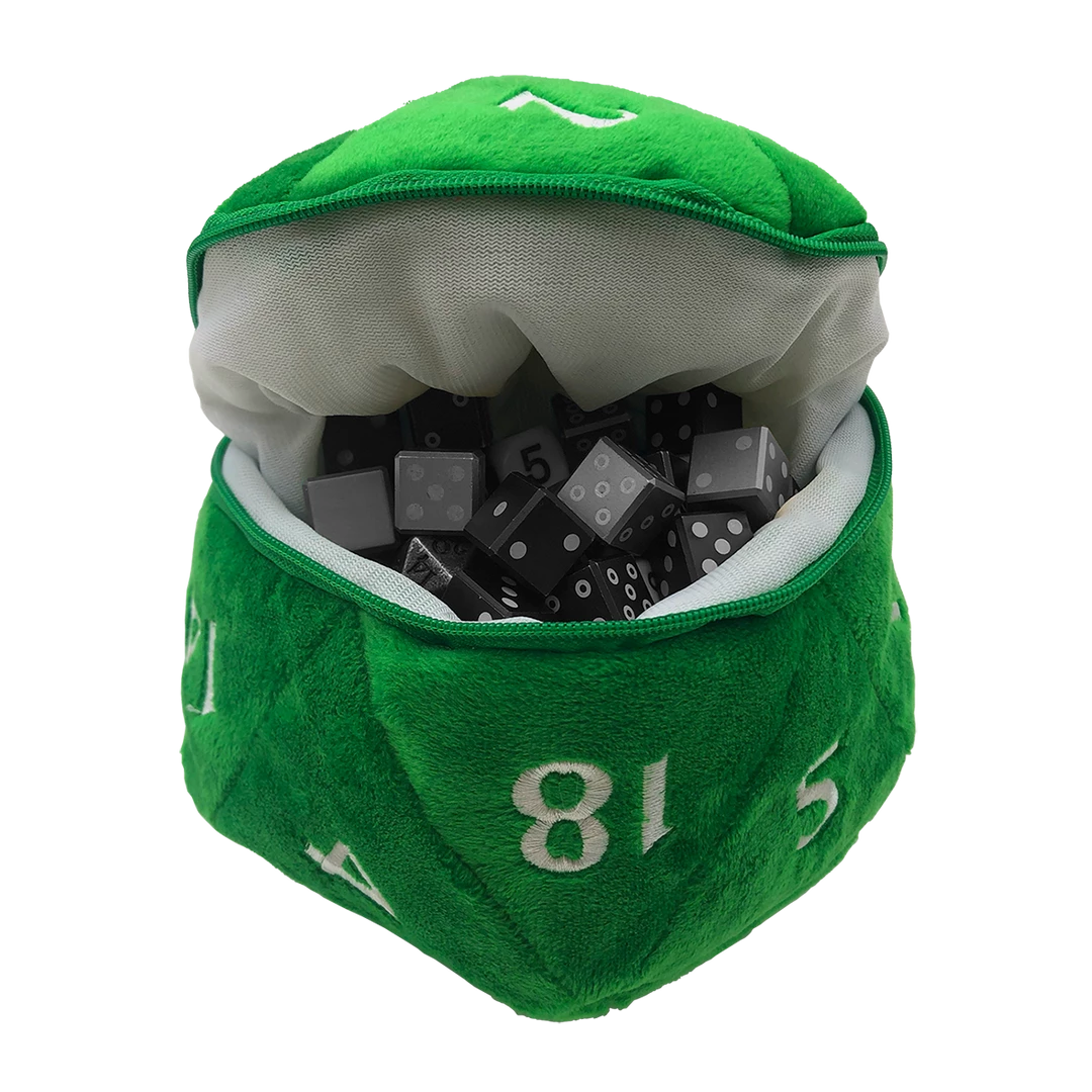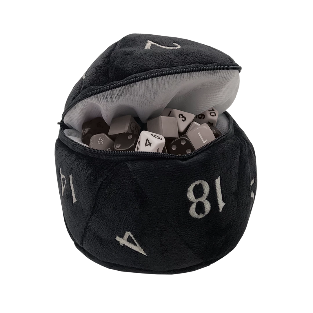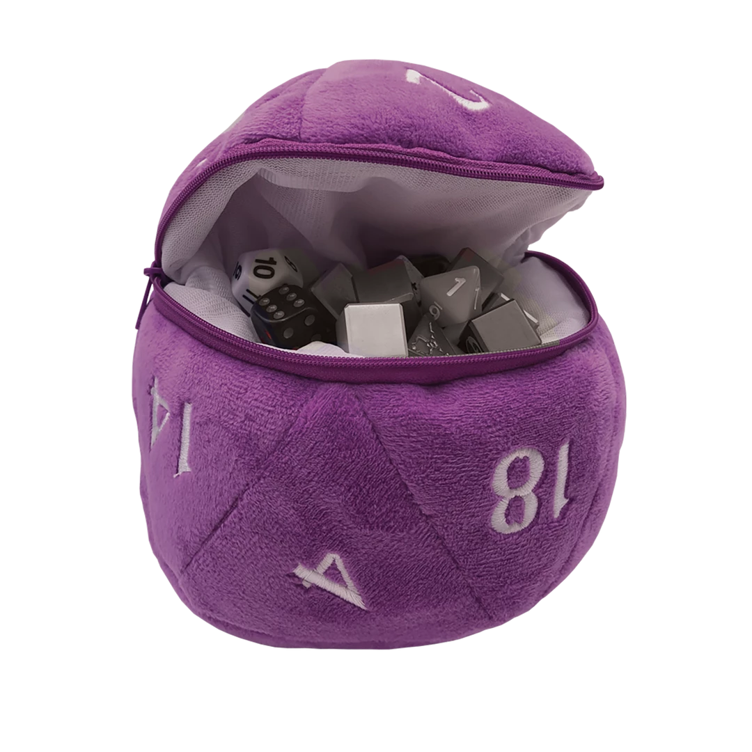 Need +5 to dice hoarding? We’ve got you covered with a new dice bag based on our ever-popular jumbo D20 plush! Zippered center pocket holds up to 50 dice, while carabiner-style hook keeps your dice securely at your side. This Plush D20 Dice Bag measures approximately 6.5 inches in diameter, and is the perfect accessory for any TTRPG (tabletop role-playing game) adventurer or dice enthusiast!
