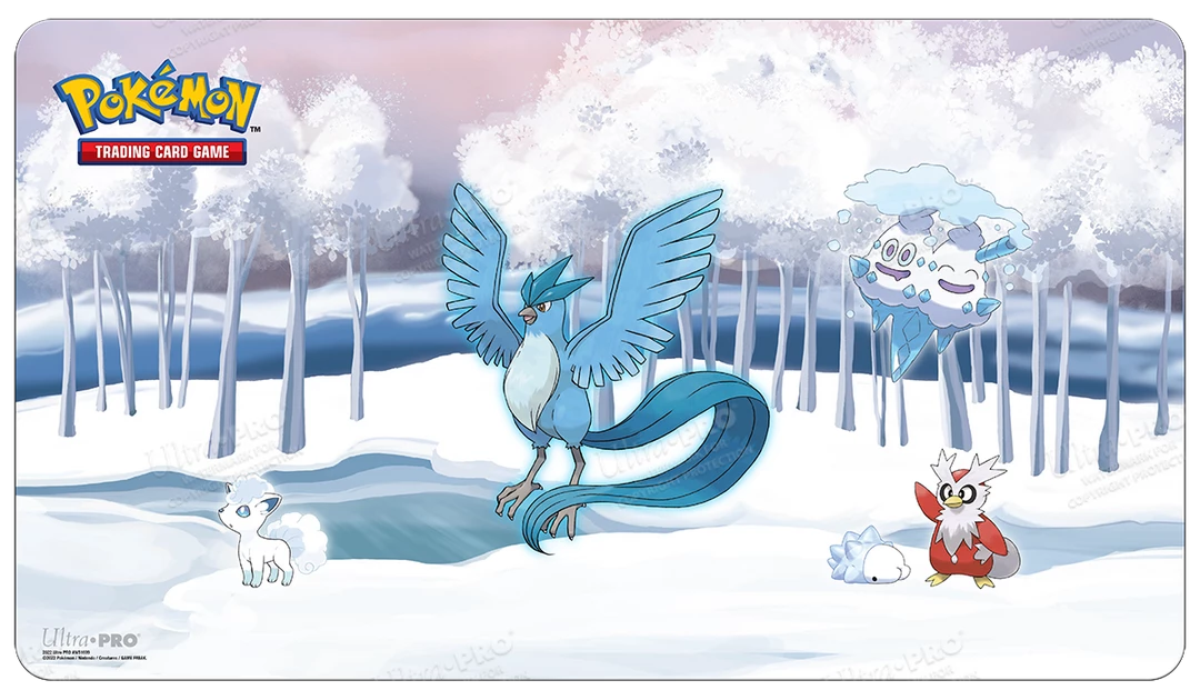 - Officially licensed Pokémon Trading Card Game Playmat featuring Articuno, Alolan Vulpix, Vanilluxe, Delibird, and Snom