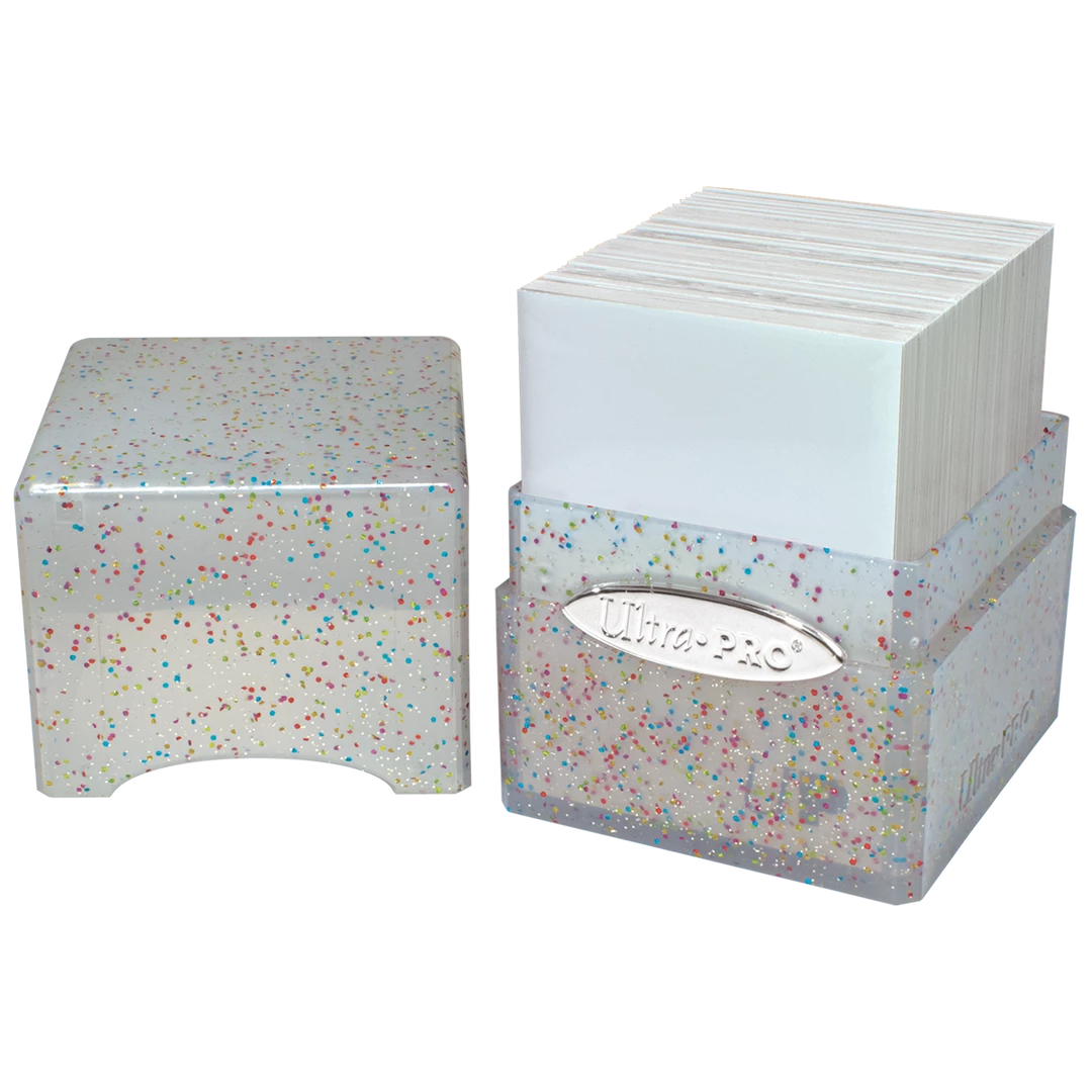 Ultra PRO’s Satin Cube is compact, secure, and durable! An update to the fan favorite Satin Tower, the injection molded plastic shell is designed to store and protect 100+ standard size trading cards in Ultra PRO Deck Protector® sleeves. The unique snap-fit locking mechanism keeps your valuable cards and components securely stored. This Satin Cube features a Glitter finish and is designed for mixing and matching tops with any other Satin Cube or Satin Tower!