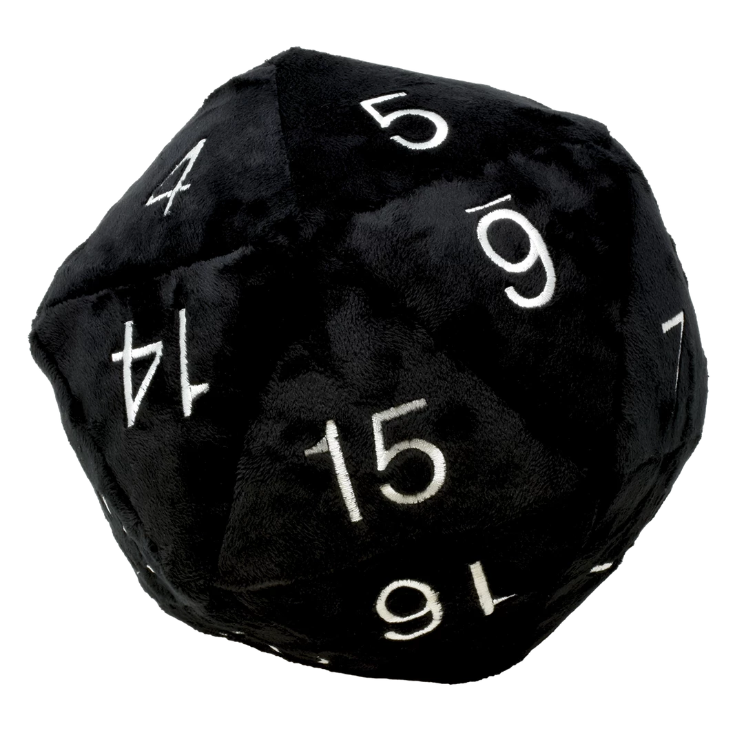 Roll big or go home! With Ultra PRO’s soft jumbo black 20-sided dice plush. Made with an ultra-soft, fuzzy fabric with stitched silver numbers, this D20 is the perfect addition to casual gaming sessions or your next geek gathering. Measuring approximately 10” in diameter, with reinforced felt backing to help the dice retain its shape this stuffed toy is also great for kids and adults.
