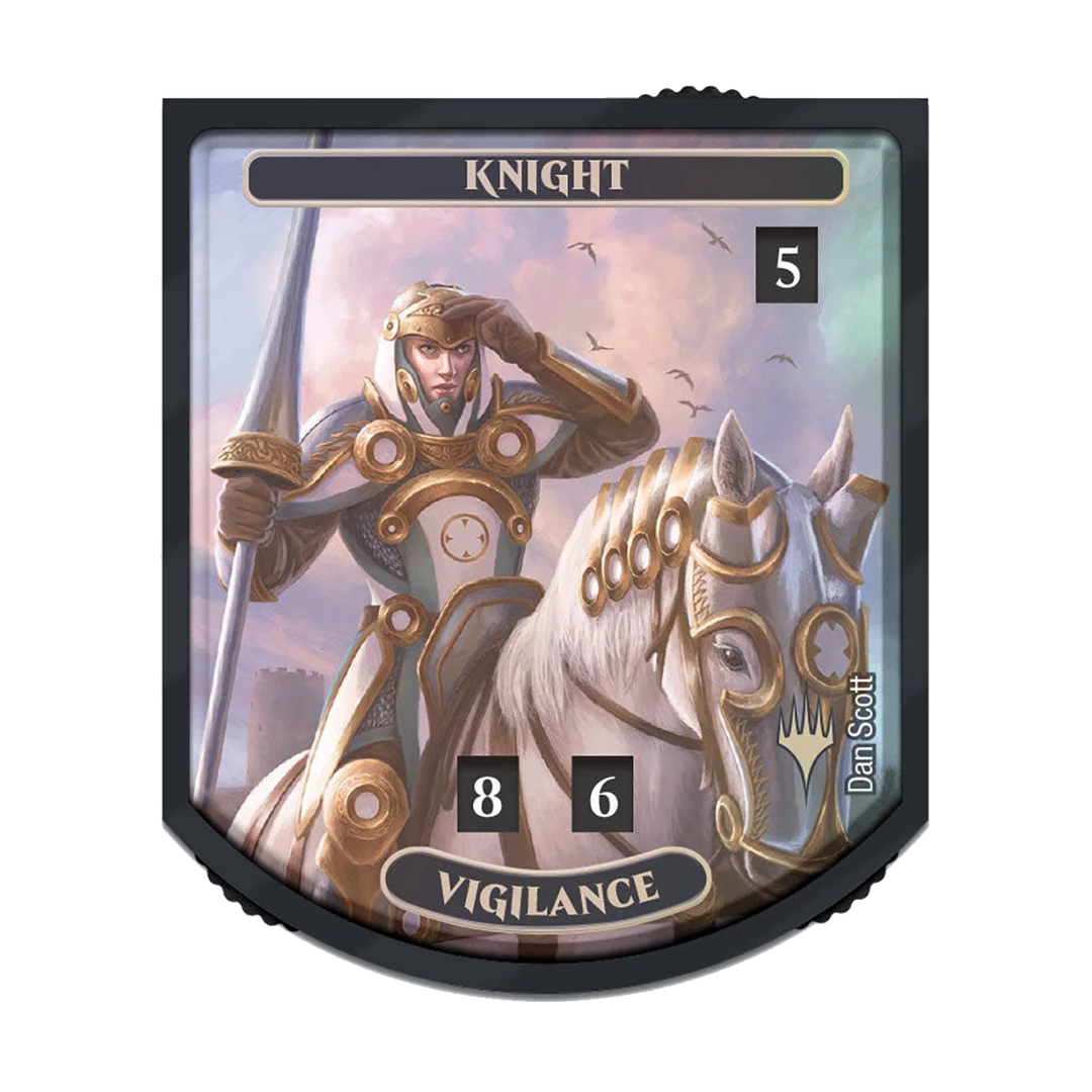 Track your token’s power and toughness or other game mechanics with these Magic: The Gathering Relic Tokens! This “Relentless Collection” release offers unique designs, available in both regular and rainbow foiled versions to give your tokens an outstanding, eye-catching look. Each Relic Token has three rotating numerical dials to track each number individually from 0 to 9. Each pack contains three (3) randomly inserted Relic Tokens. The dimensions of a Relic Token is approximately 2″ x 2.4″.