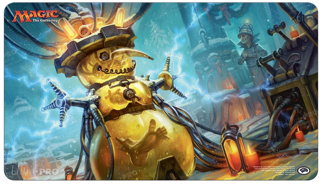 Our Happy Holidays Some Disassembly Required Gaming Playmats are made with a premium fabric top for a smooth, protective playing surface. The back of the playmats is lined with non-slip, textured rubber material for added grip and padding. Each playmat is packed in a full-color, peggable display.