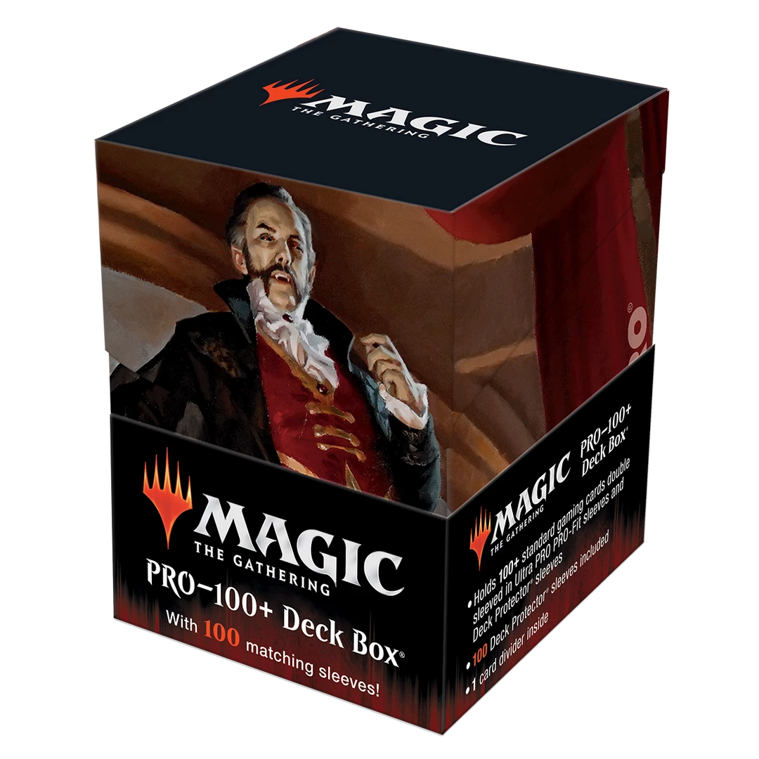 The Commander Combo Box includes 100 Deck Protector® sleeves, a 100+ Deck Box®, and a deck divider, all featuring matching Strefan, Maurer Progenitor artwork from Magic: The Gathering Innistrad Crimson Vow Commander. The sleeves are made using proprietary ChromaFusion technology to minimize delamination, and the 100+ Deck Box and divider are made from a rigid polypropylene material. All materials are non-PVC and archival-safe to provide premium protection.