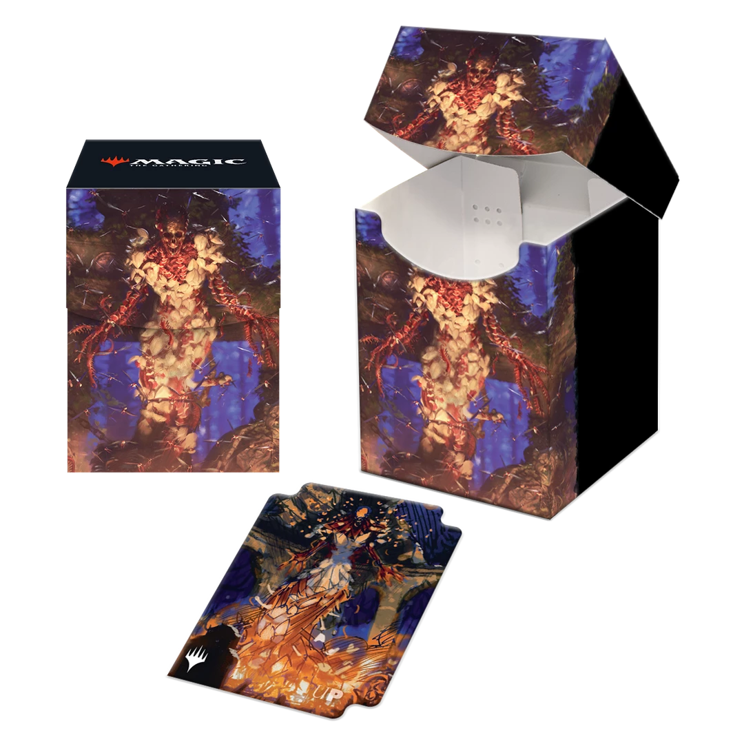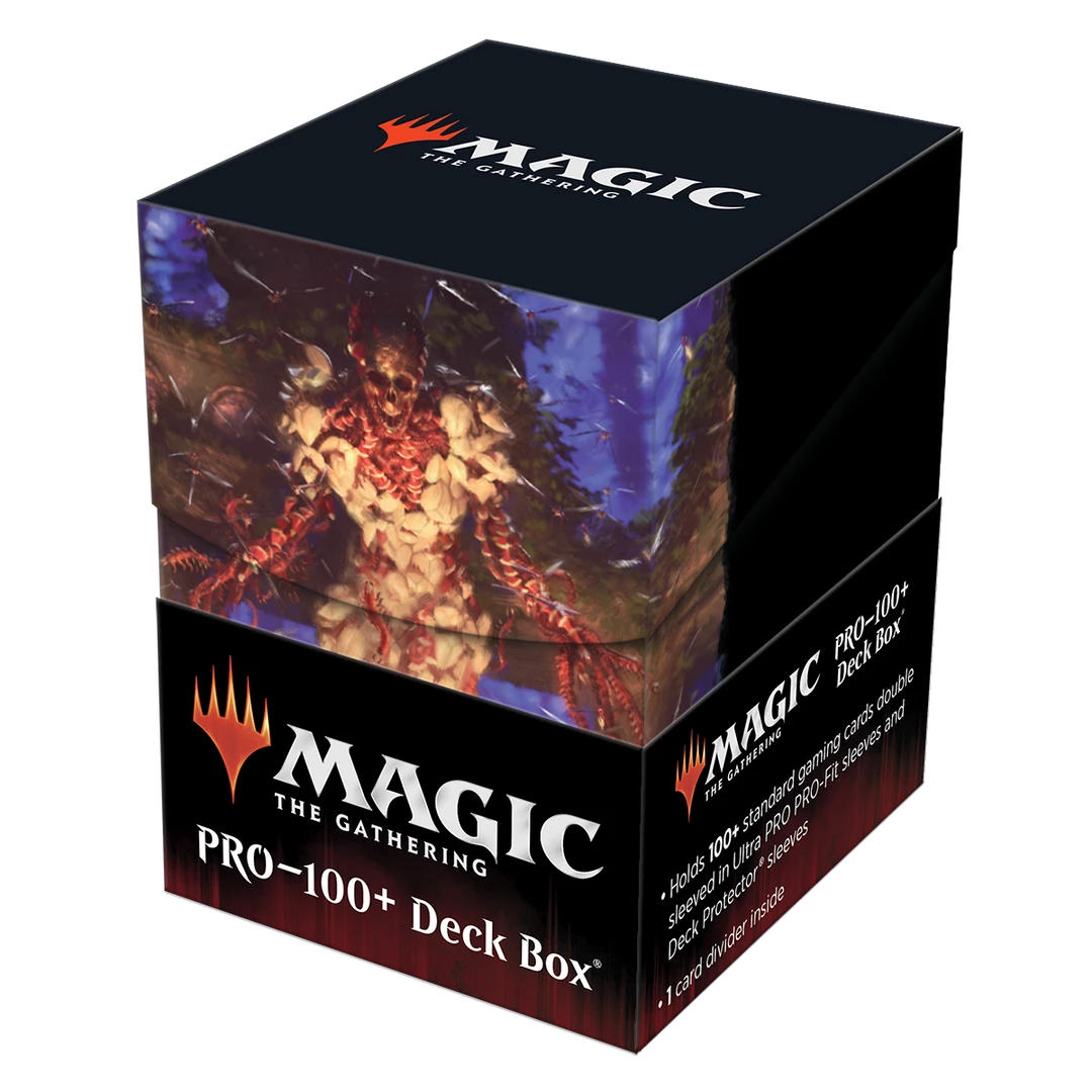 The 100+ Deck Box features vibrant, full-color artwork from Magic: the Gathering and includes a matching deck divider. Made with archival-safe, non-PVC, rigid polypropylene materials, you can store up to 100 double-sleeved cards with confidence. The self-locking lid keeps your cards securely stored when not in use, while also offering easy access. Sized for standard size trading cards.