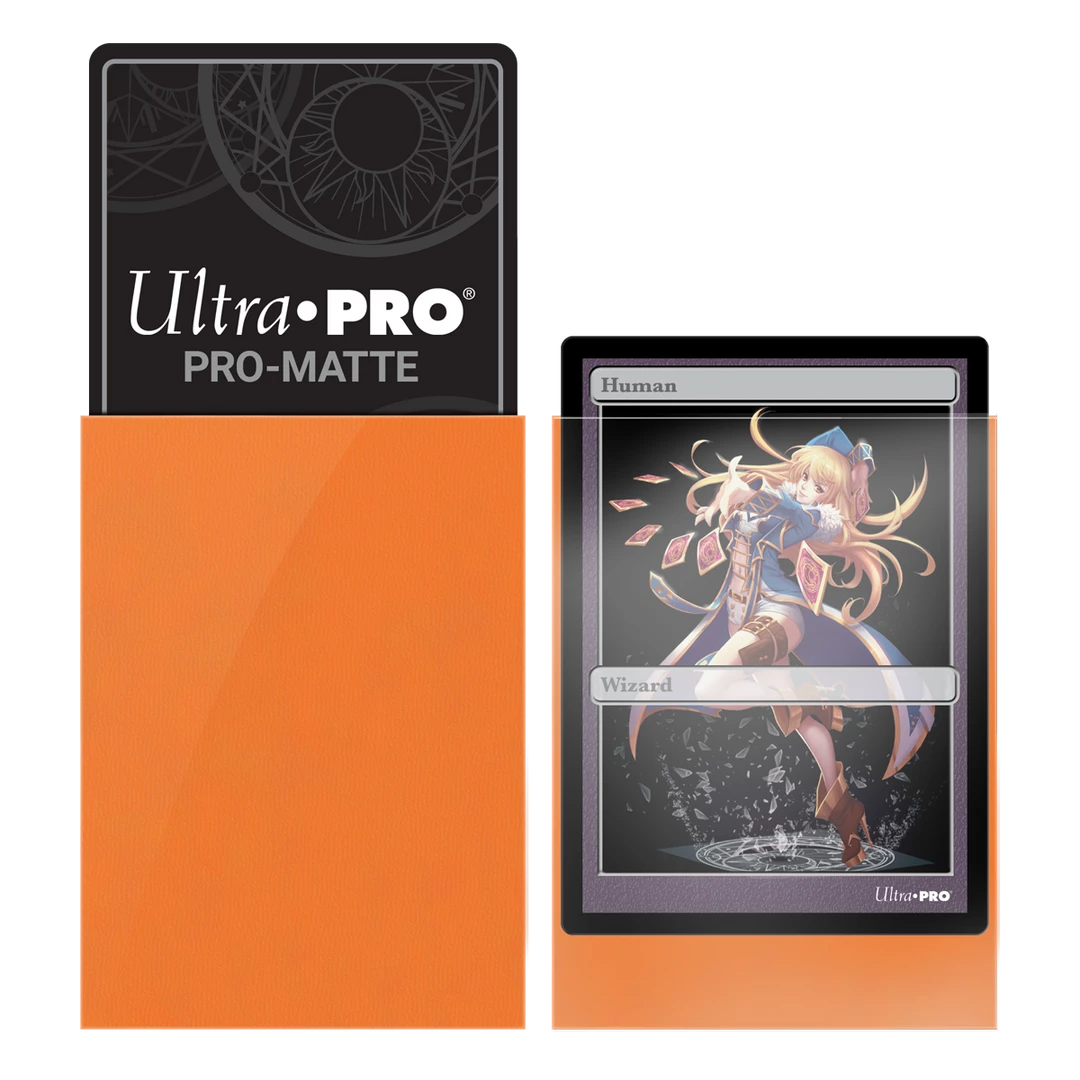 Protect your valuable trading card game cards with Ultra PRO’s PRO-Matte Deck Protector sleeves. Made with archival-safe (non-PVC) materials, these sleeves keep your cards from damage during gameplay and make mash shuffling a breeze. Marked with Ultra PRO’s authenticity hologram seal, these sleeves are made to fit small (Yu-Gi-Oh!) size cards. As with all PRO-Matte style Deck Protector sleeves, the clear side uses non-glare matte material for a softer feel, easier shuffle, and reduced glare for better on-camera presentation. Each pack comes with 60 sleeves and is designed to fit small-sized gaming cards such as Yu-Gi-Oh! Trading Card Game cards.