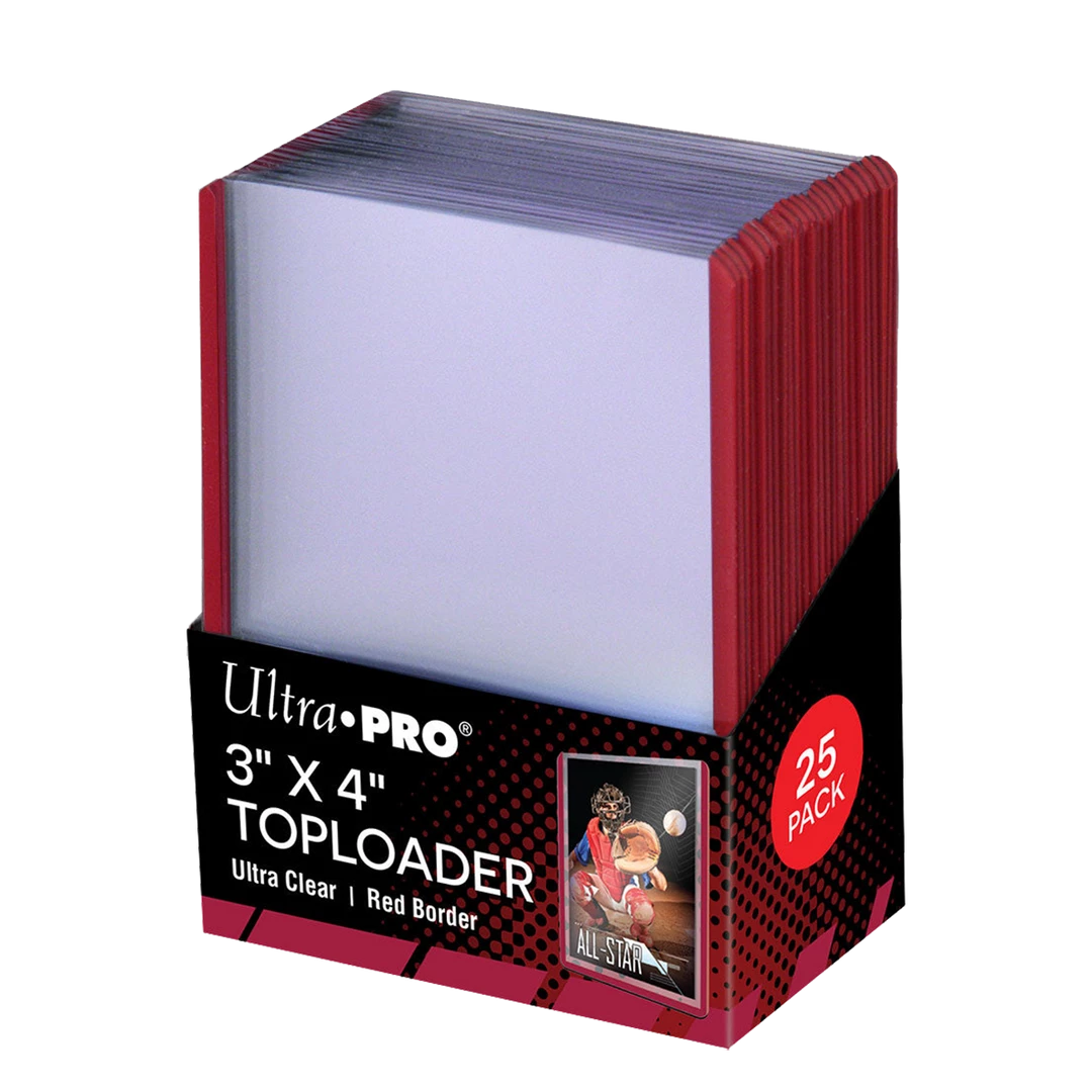 Protect and preserve your valuable trading cards with Ultra PRO’s super clear, premium 3″ x 4″ Toploader with blue border for standard size cards (2-1/2″ x 3-1/2″). Rigid plastic encloses the card and keeps it clean while preventing damage. Organize your collection with the 5 colors available. 25 Toploaders per pack.