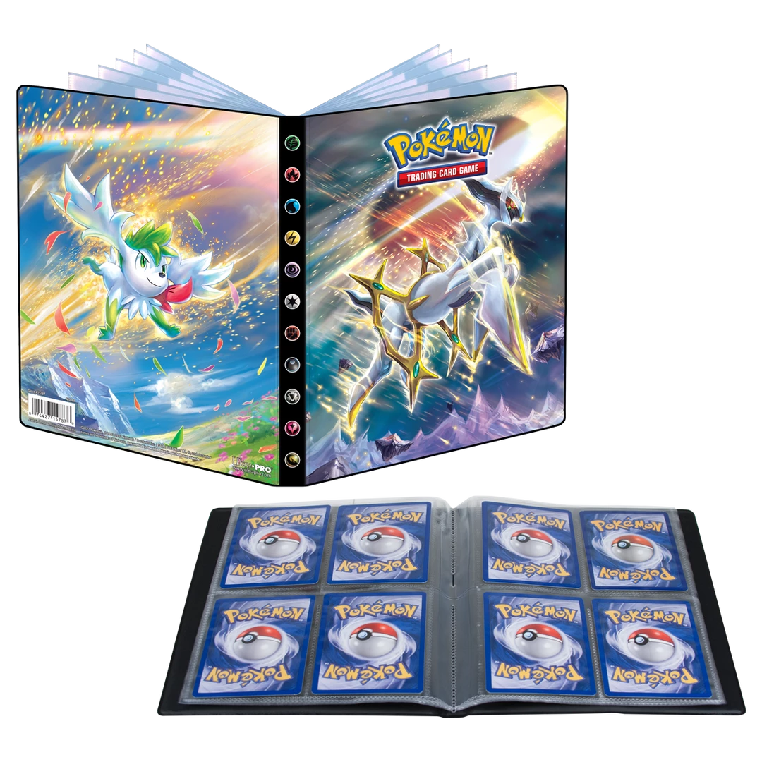 - Officially licensed Pokémon Trading Card Game 4-Pocket Portfolio featuring Arceus and Shaymin