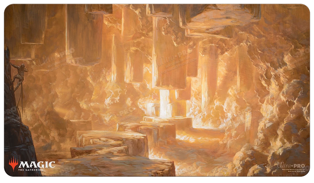 Up your game at your next game night with an official Magic: The Gathering playmat showcasing highly detailed and vibrant Pillarverge Pathway artwork from the Zendikar Rising set. Made with a premium fabric top to prevent damage to cards during gameplay for tabletop gamers. With dimensions of approximately 24″ X 13-1/2″, this playmat is also the perfect decorative oversized mouse pad for computer and laptop workstations. Non-slip rubber backing lets the playmat lay flat and prevents it from shifting during use.